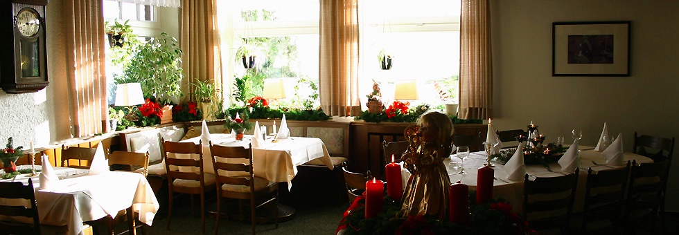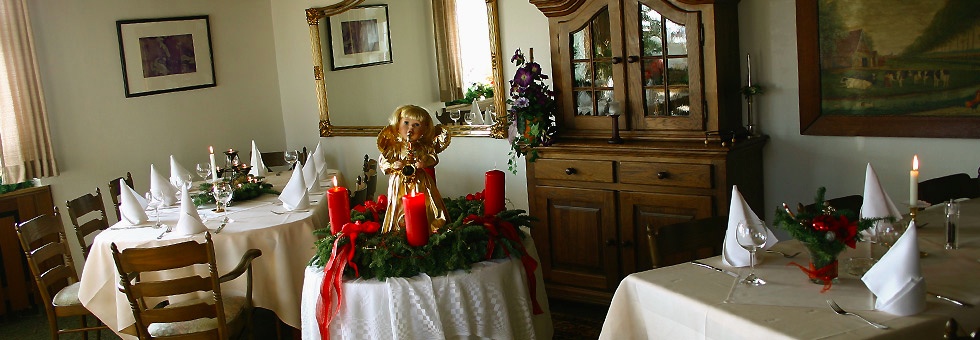 … in unserem Restaurant — genauer gesagt in der ‘Schmugglerstube‘. Dieser Raum fasst bis zu 40 Personen. Als Hotelgast finden Sie hier morgens ein ausgiebiges Frühstücksbuffet, um gestärkt in den Tag zu starten. Den Rest des Tages servieren wir hier saisonale, frische Gerichte und Köstlichkeiten aus der Region. Werfen Sie dazu doch einfach einen Blick in den Auszug aus unserer Speisekarte. Auch für Ihre privaten Feierlichkeiten oder geschäftliche Anlässe steht Ihnen der Raum selbstverständlich zur Verfügung. Bei Gruppen ab 8 Personen bitten wir um vorherige telefonische Voranmeldung.